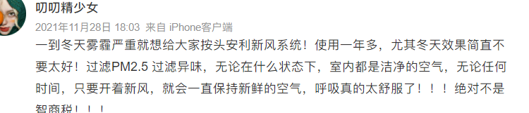 幫助室內換氣,是新風最主要的功能。因為有濾材,還能過濾PM2.5。即使是霧霾天氣,窗戶緊閉,依然能呼吸到新鮮空氣。